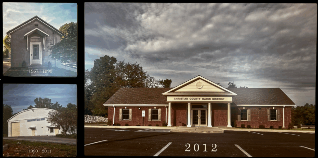 Our goal is to provide high quality water at the lowest possible cost. The Christian County Water District was created on November 13, 1967 and governed by the original board of commissioners consisting of Chairman, D.T. Porter, Secretary, Myron Pool and Treasurer, Everett Wells. The water district began construction to provide water service to portions of northern and western Christian County in 1975 with 733 estimated initial customers. Today, CCWD has grown to service approximately 6070 customers throughout Christian County, Kentucky.